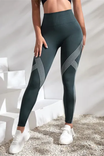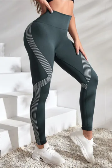 Women's Color Contrasting Stripe High Waist Seamless Sports Yoga Pants