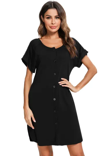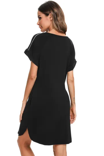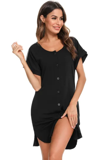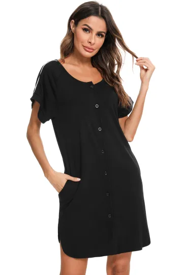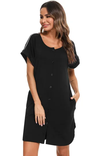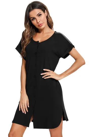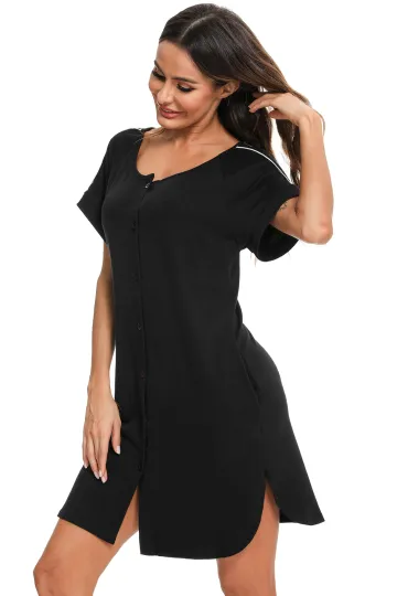 Women's' Side Dress Contrast Color Full Button Slit Nursing Nightdress