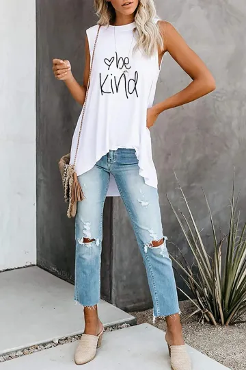 Fashion All-Match Casual Ladies Sleeveless Printed T-Shirt
