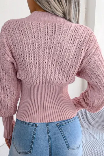 Hollow sexy V-neck bat sleeve waist pullover sweater
