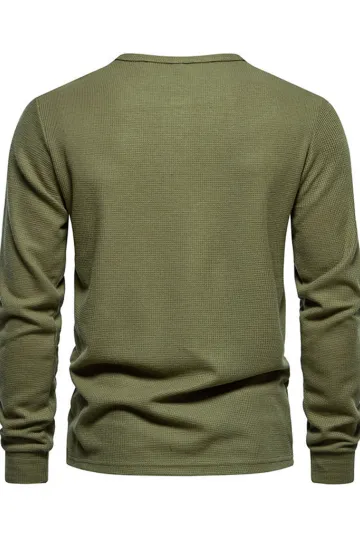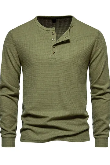 Wholesale Men's Four Button Waffle Henley Neck Long Sleeve T-Shirt