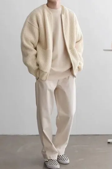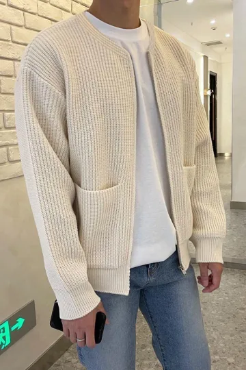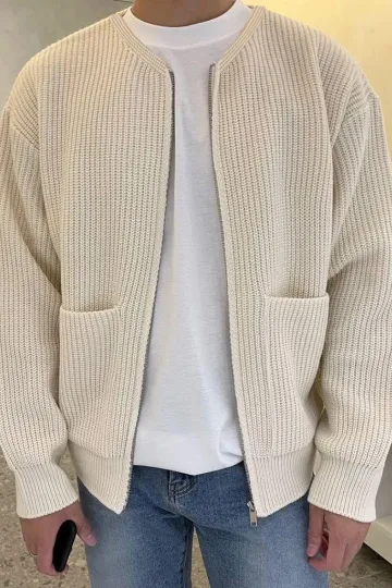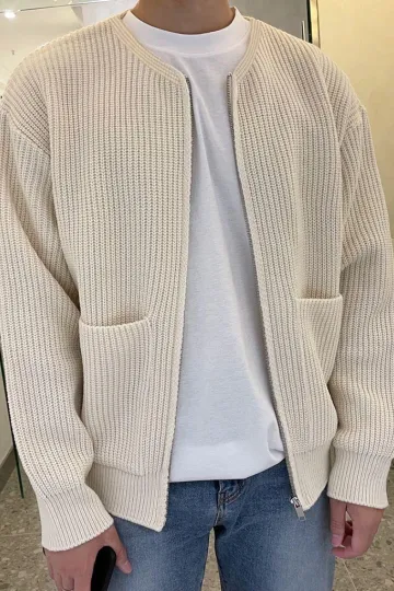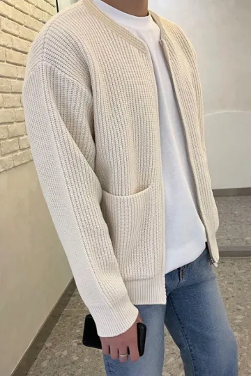 Wholesale Men's solid color loose casual lazy style knitted sweater cardigan