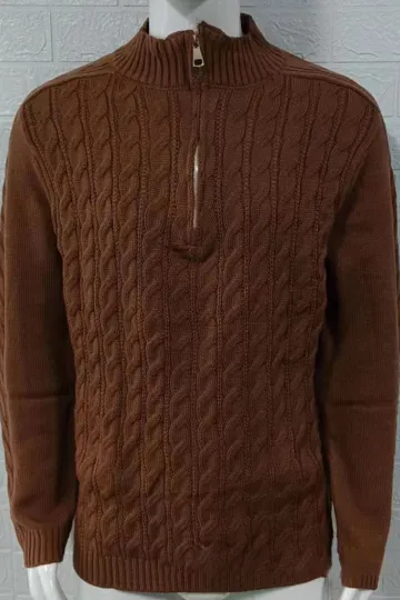 Wholesale Men's new solid color zipper half turtleneck long sleeve sweater