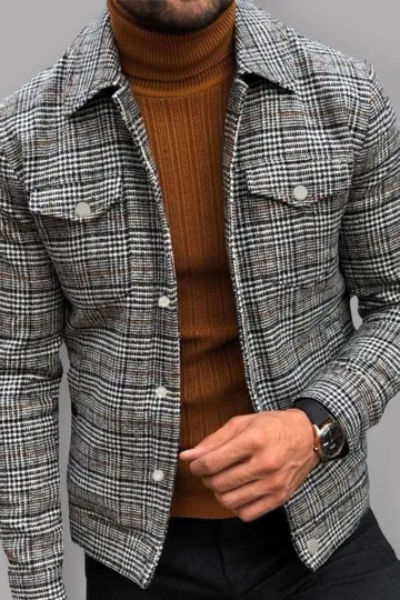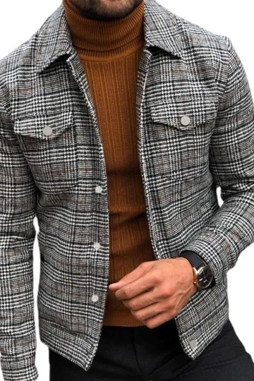 Slim Casual Fashion Autumn Plaid Men's Coat Tops
