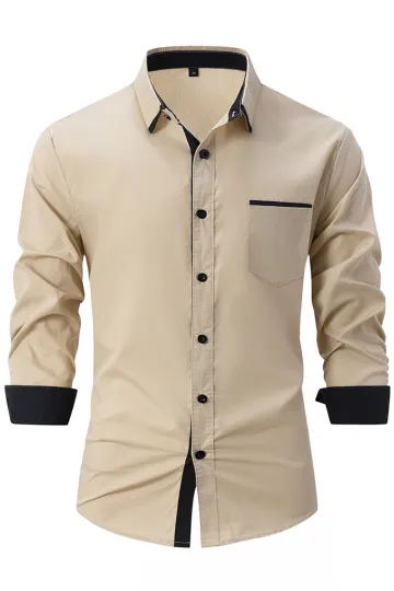 Wholesale Men's Color Block Business Slim Casual Shirt Long Sleeve Shirt
