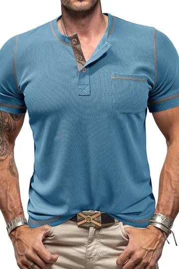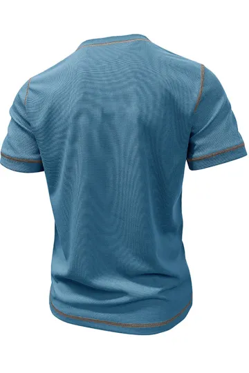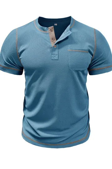 Wholesale Men's American Vintage Henley Collar Short Sleeve T-Shirt
