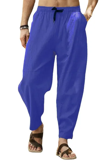 Wholesale Men's casual loose cotton and linen drawstring hip-hop lantern pencil pants