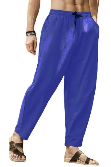 Men's casual loose cotton and linen drawstring hip-hop lantern pencil pants