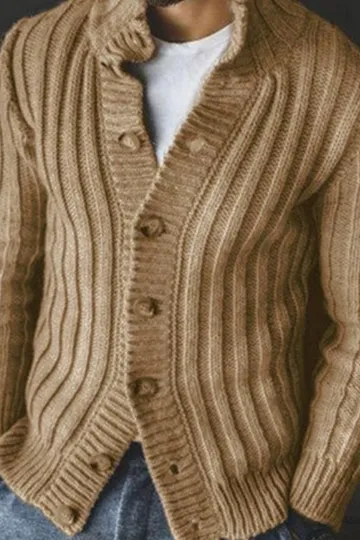 Casual Single Breasted Knit Sweater Lapel Long Sleeve Sweater Jacket Men