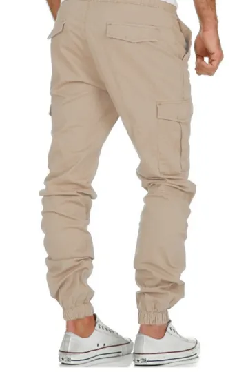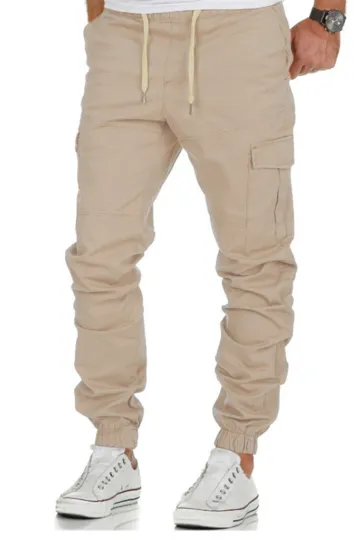 Wholesale Men's Solid Color Cargo Pocket Drawstring Casual Trousers