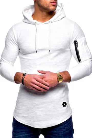 Wholesale Men's solid color hooded casual long-sleeve T-shirt