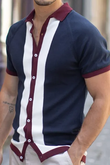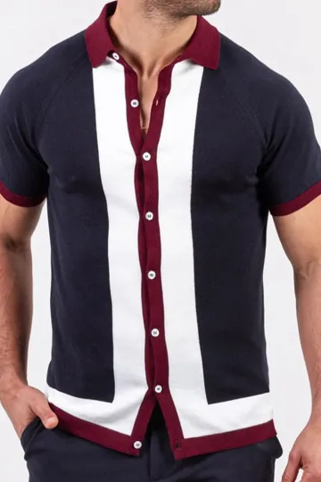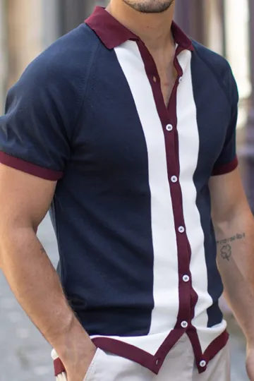 Wholesale Men's single Breasted Paneled Color Contrast Short Sleeve Shirt