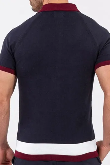 Men's single Breasted Paneled Color Contrast Short Sleeve Shirt