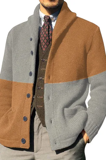 Men's Contrasting Color Block Button Long Sleeve Cardigan