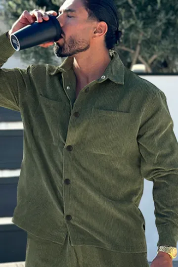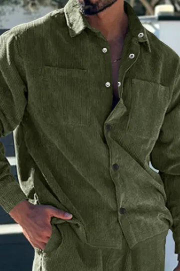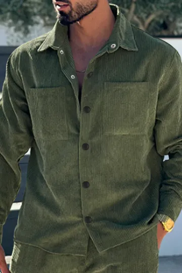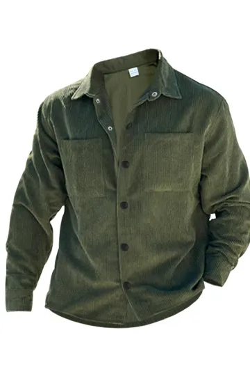 Men's new casual multi-pocket solid color corduroy button-down shirt