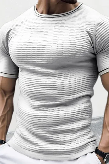 Wholesale Men's round neck short sleeve slim fit knitted T-shirt