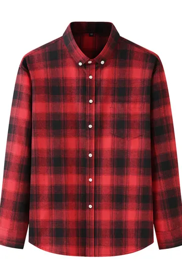 New Large Size Men's Brushed Long Sleeve Shirt Casual Plaid Long Sleeve Shirt