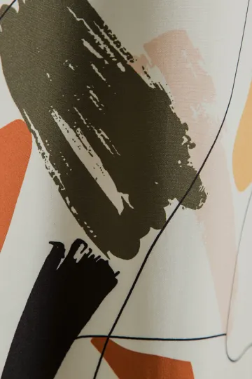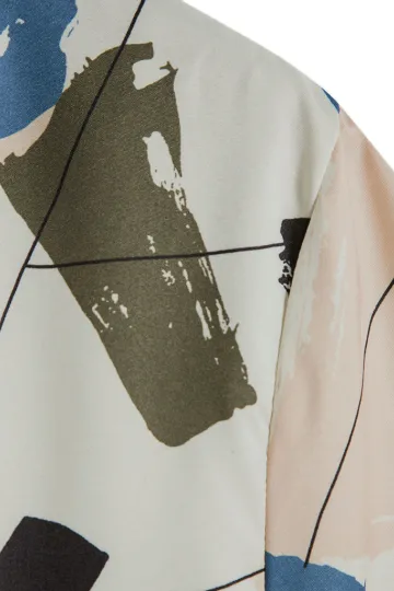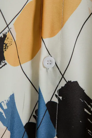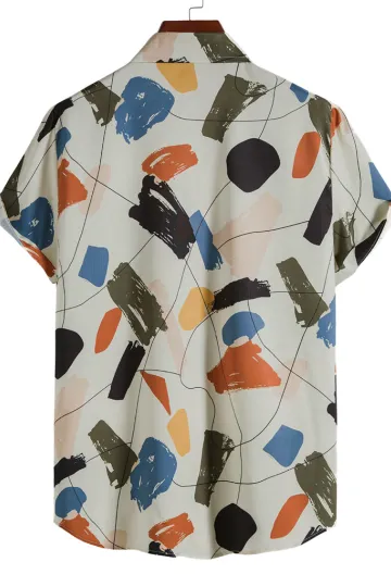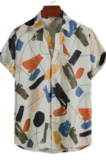 Wholesale White Graffiti Print Lapel Cotton Slim Fit Men's Shirt