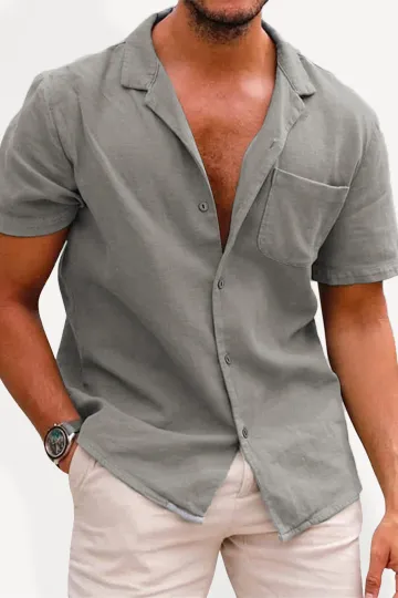 Wholesale Men's Woven Linen Loose Lapel Shirt