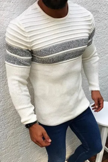 Wholesale Men's Colorblock Stripe Casual Crew Neck Pullover
