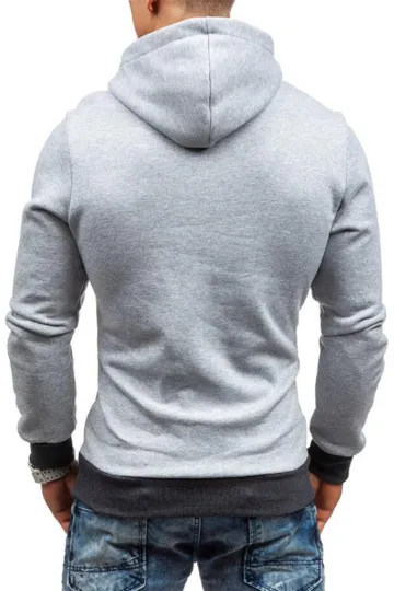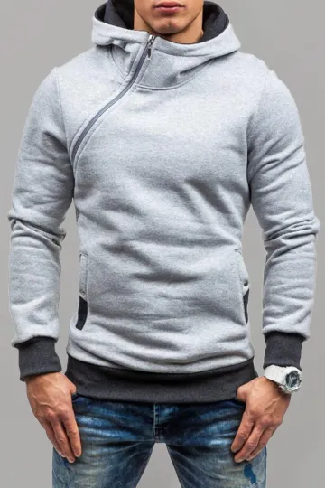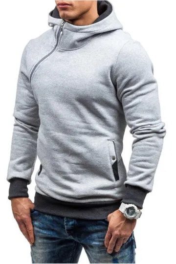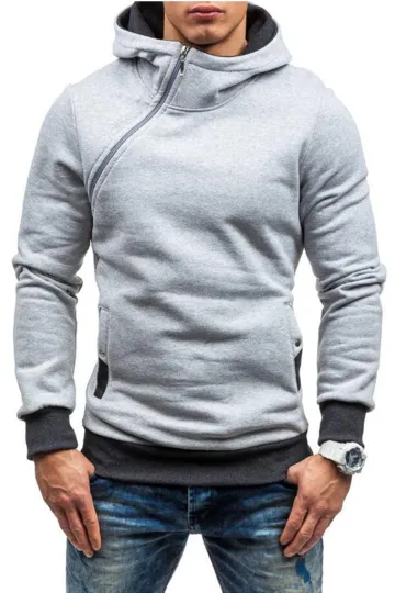 Wholesale Men's diagonal zipper solid color long-sleeved hoodie