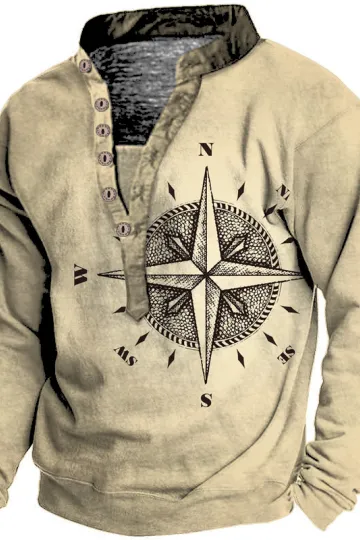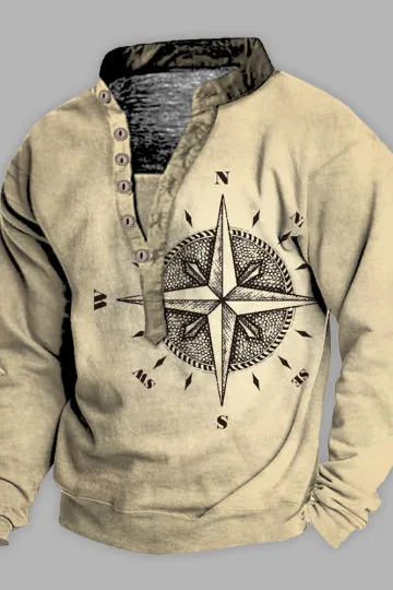 Wholesale Men's Arrow Compass Print Long Sleeve T-Shirt