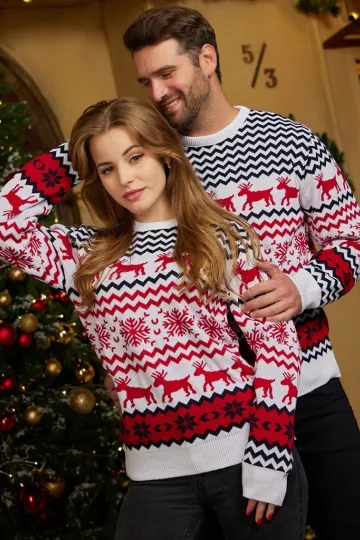 Wholesale Men's Christmas Crew Neck Elk Jacquard Long Sleeve Sweater