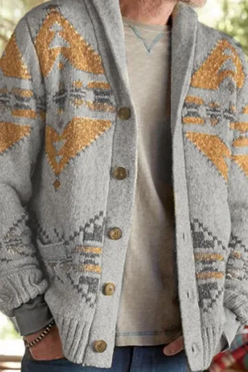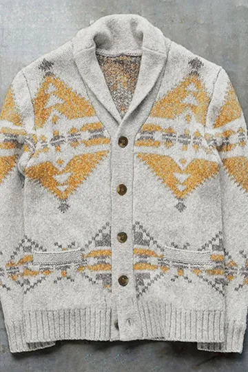 Jacquard Outer Wear Sweater Long Sleeve Knitted Jacket Top
