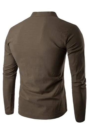 Wholesale Men's Woven Cotton Linen Stand Collar Long Sleeve T-Shirt