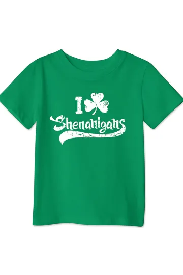 Wholesale New style green clover printed loose pullover short-sleeved T-shirt for boys and girls