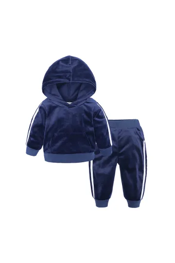Wholesale Children's Hooded Side Strip Gold Velvet Pyjama Sets