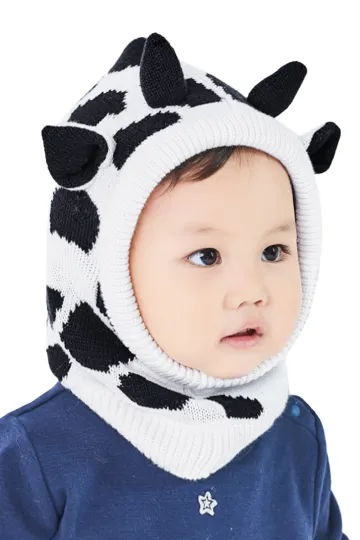 Children'S Bib All-In-One Cartoon Animal Baby Plus Velvet Knitted Hat