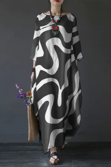 Wholesale Abstract Print Long Sleeve Loose Maxi Dress