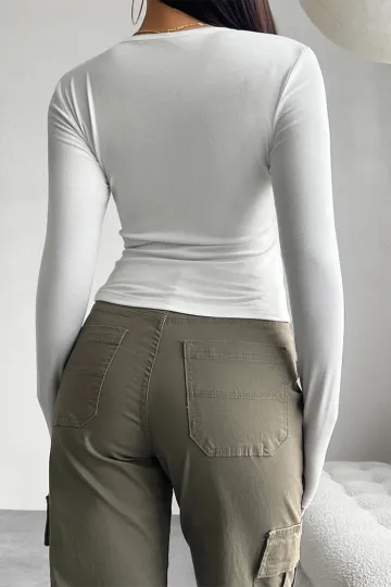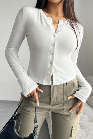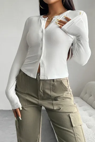Wholesale Solid Color Cardigan Button-Down Long Sleeve T-Shirt