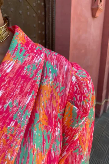New style deep V-neck bubble short-sleeved printed elastic waist jumpsuit