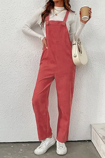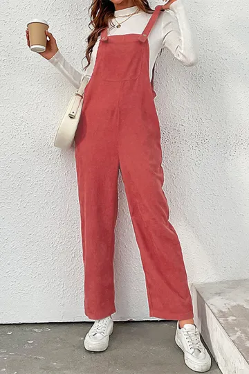 New women's solid color loose suspender corduroy wide leg jumpsuit