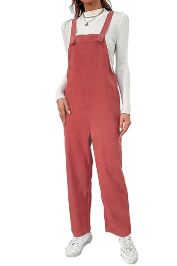Wholesale New women's solid color loose suspender corduroy wide leg jumpsuit