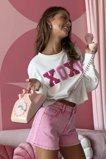 Wholesale Women's embroidered heart XOXO casual loose sweatshirt