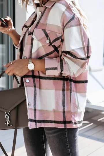 Wholesale Women's autumn and winter long-sleeved loose wool plaid shirt coat