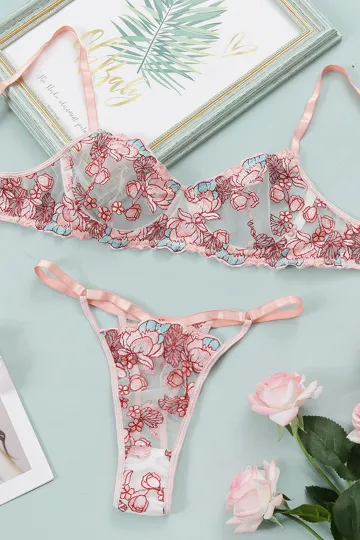 Wholesale Sweet Style Nylon Knit Lingerie Set with Slight Elasticity