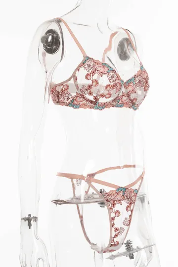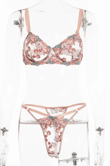 Sweet Style Nylon Knit Lingerie Set with Slight Elasticity