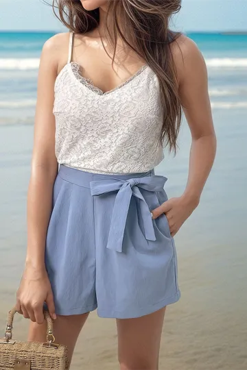 Women's casual suspender lace patchwork jumpsuit