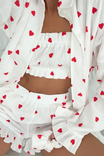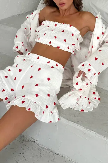 Wholesale Sexy tube top and love printed home wear pajamas three-piece set