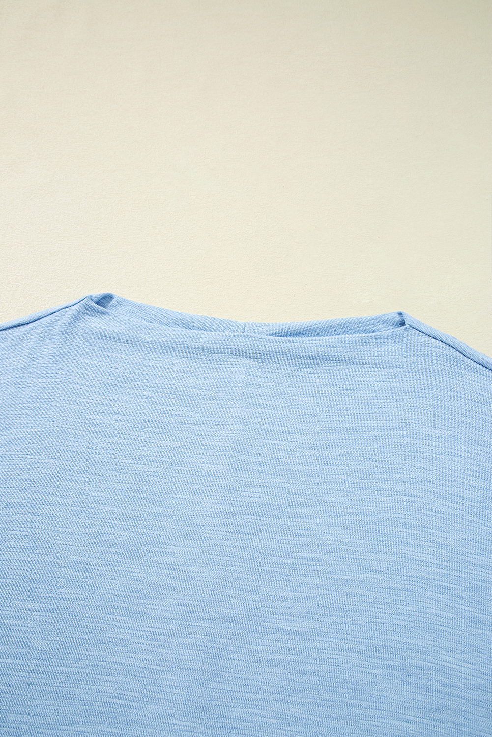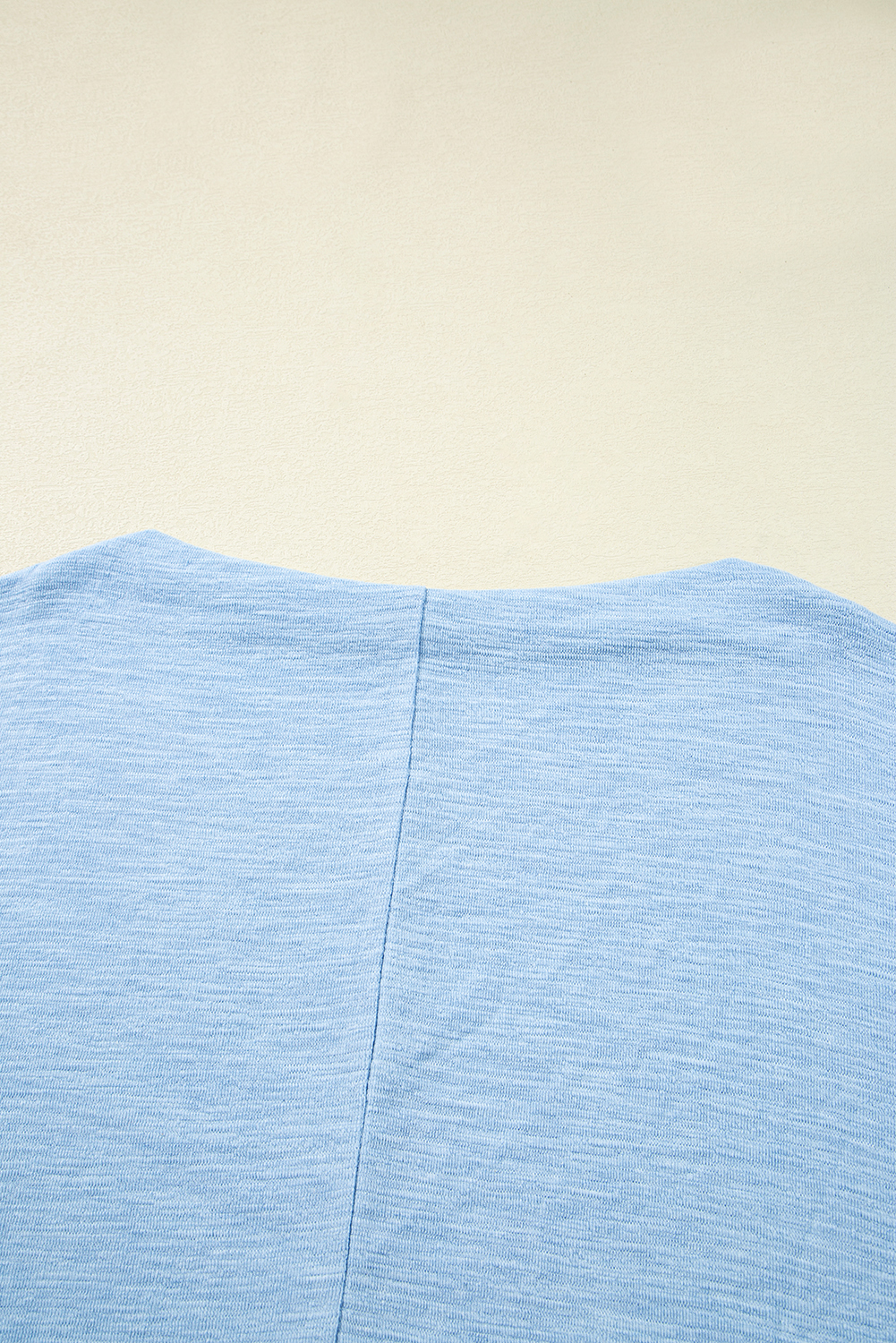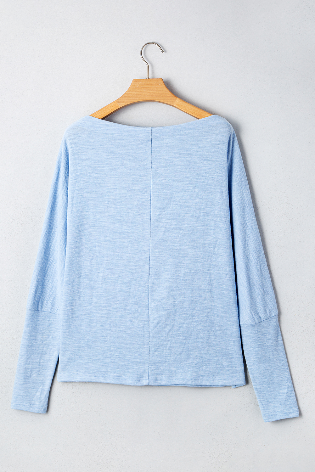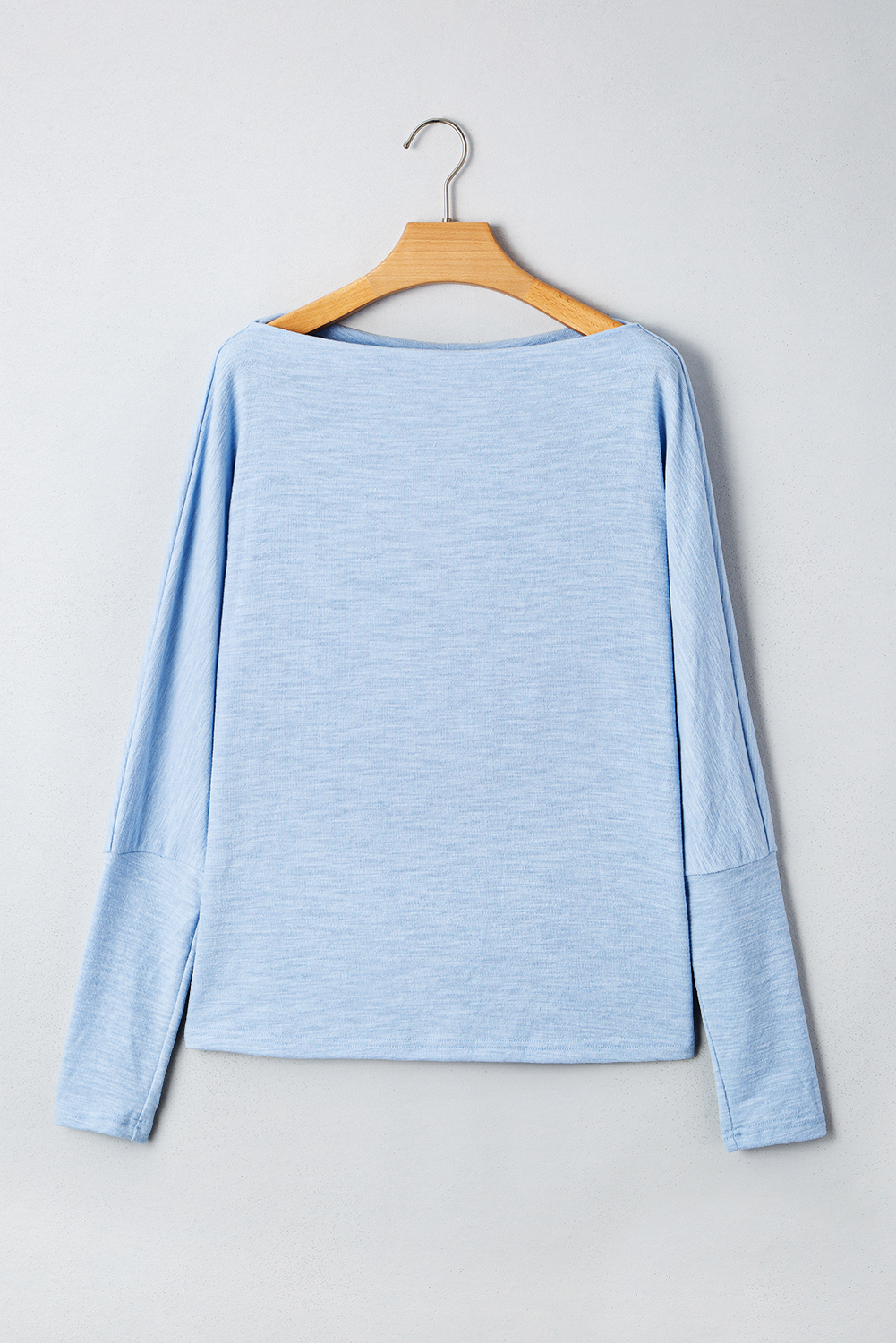 Beau Blue Solid Color Batwing Long Sleeve Top