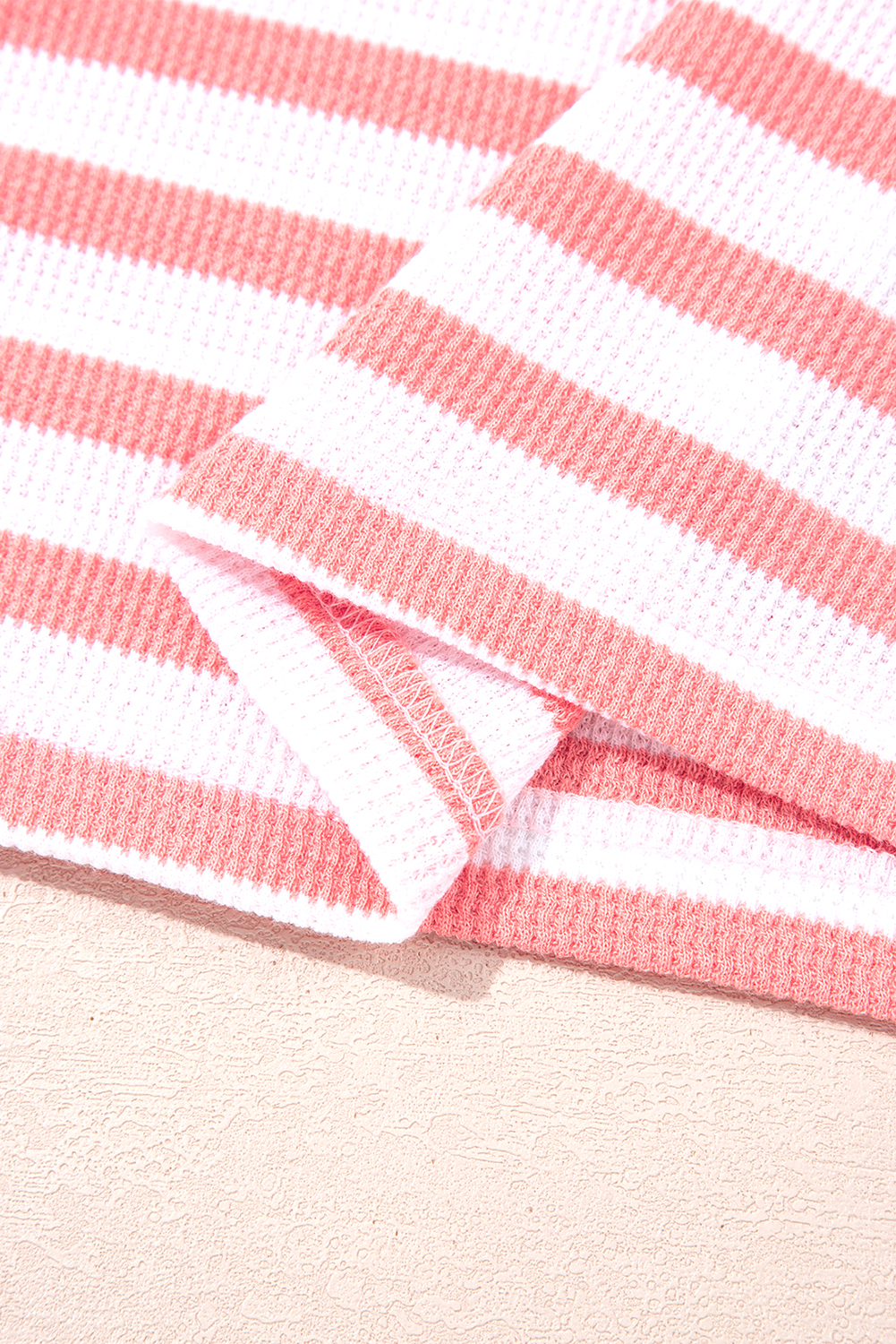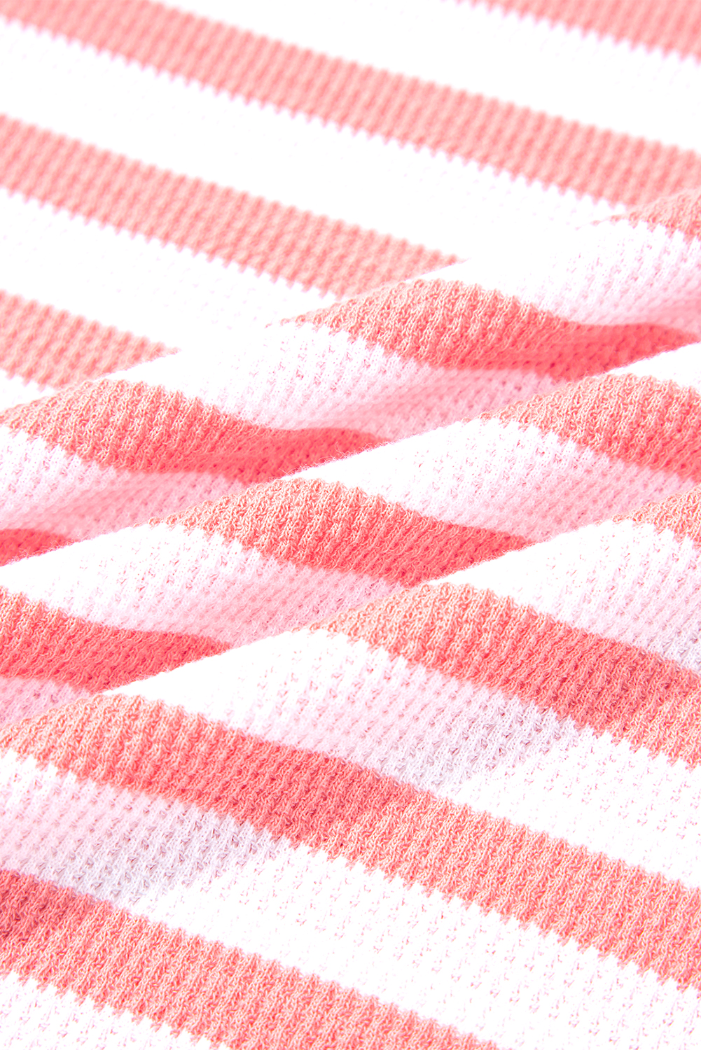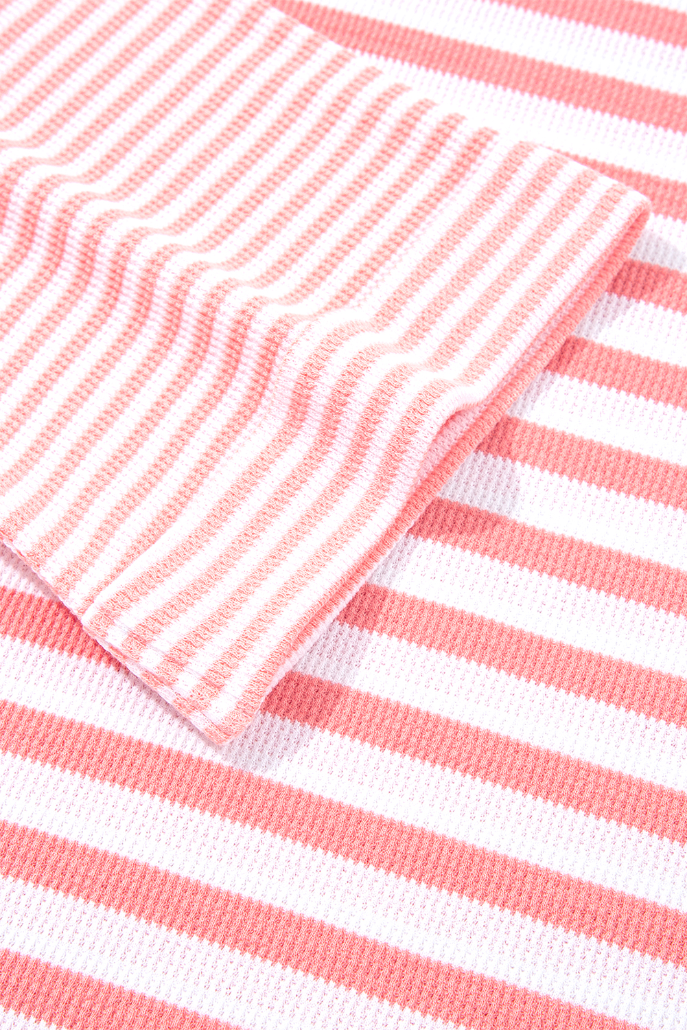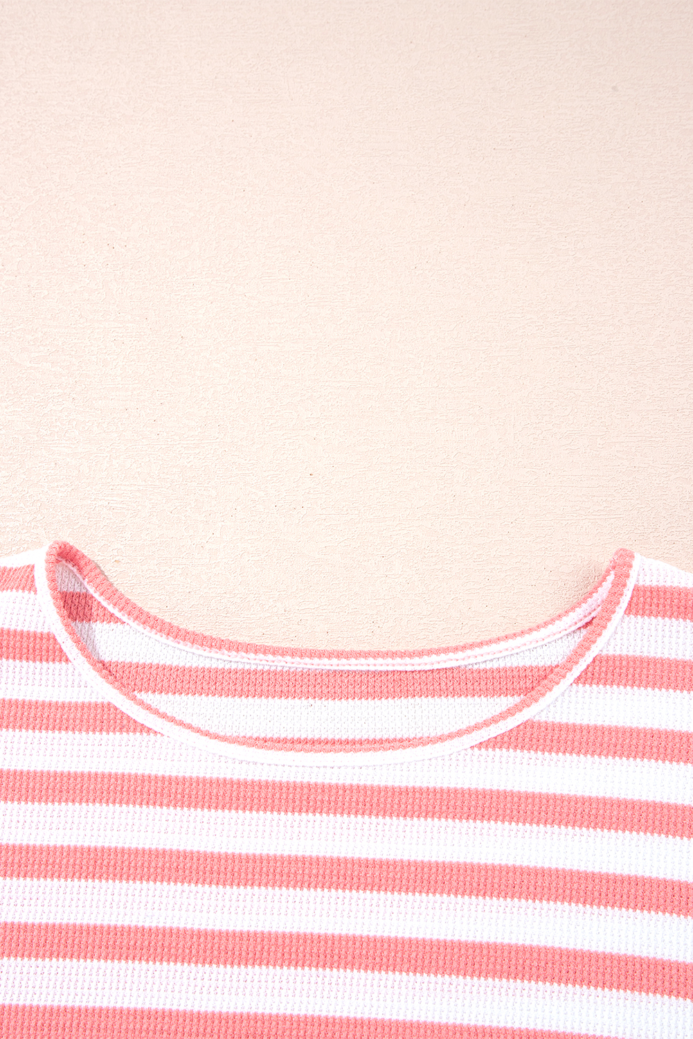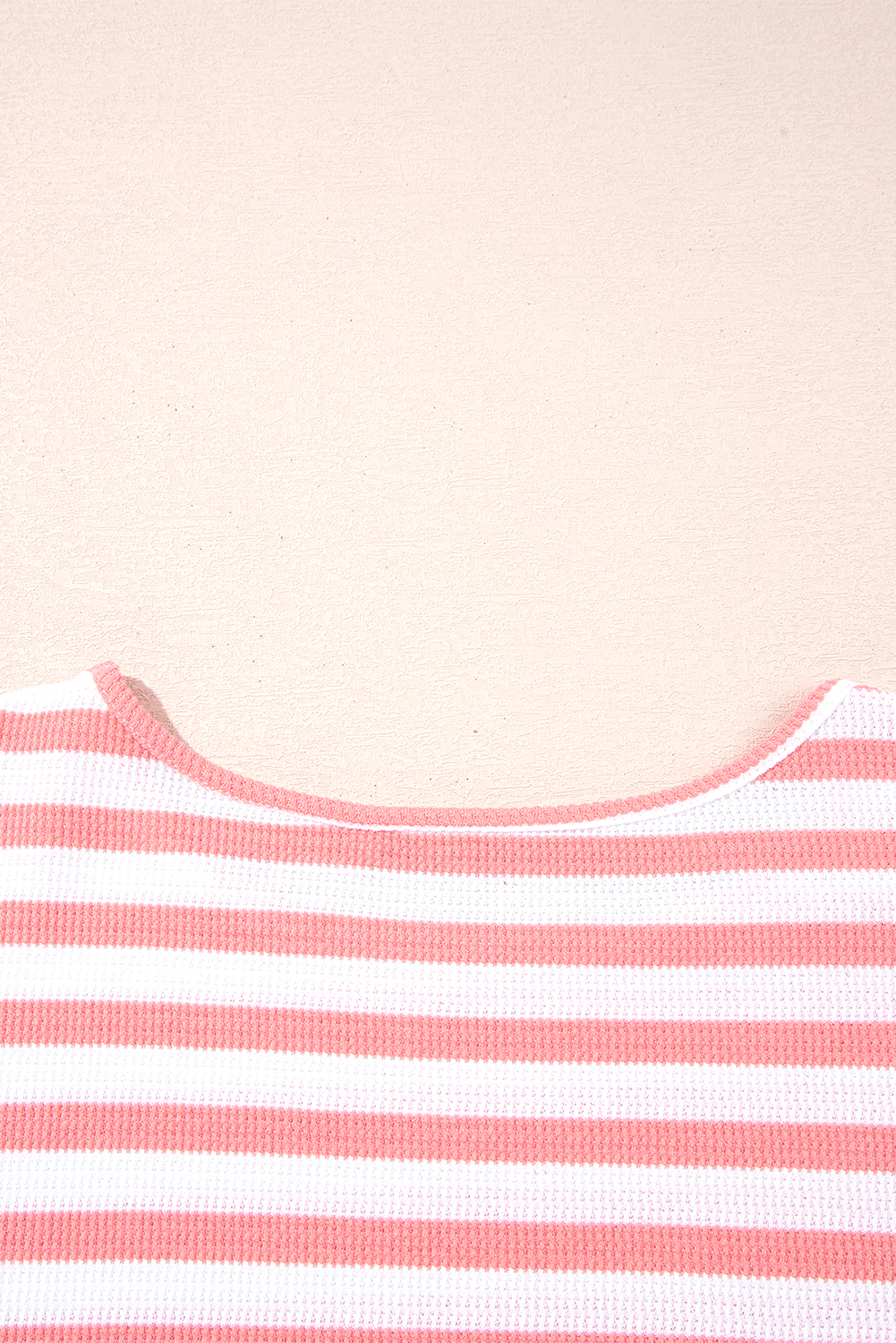 Pink Stripe Textured Contrast Dropped Long Sleeve Top