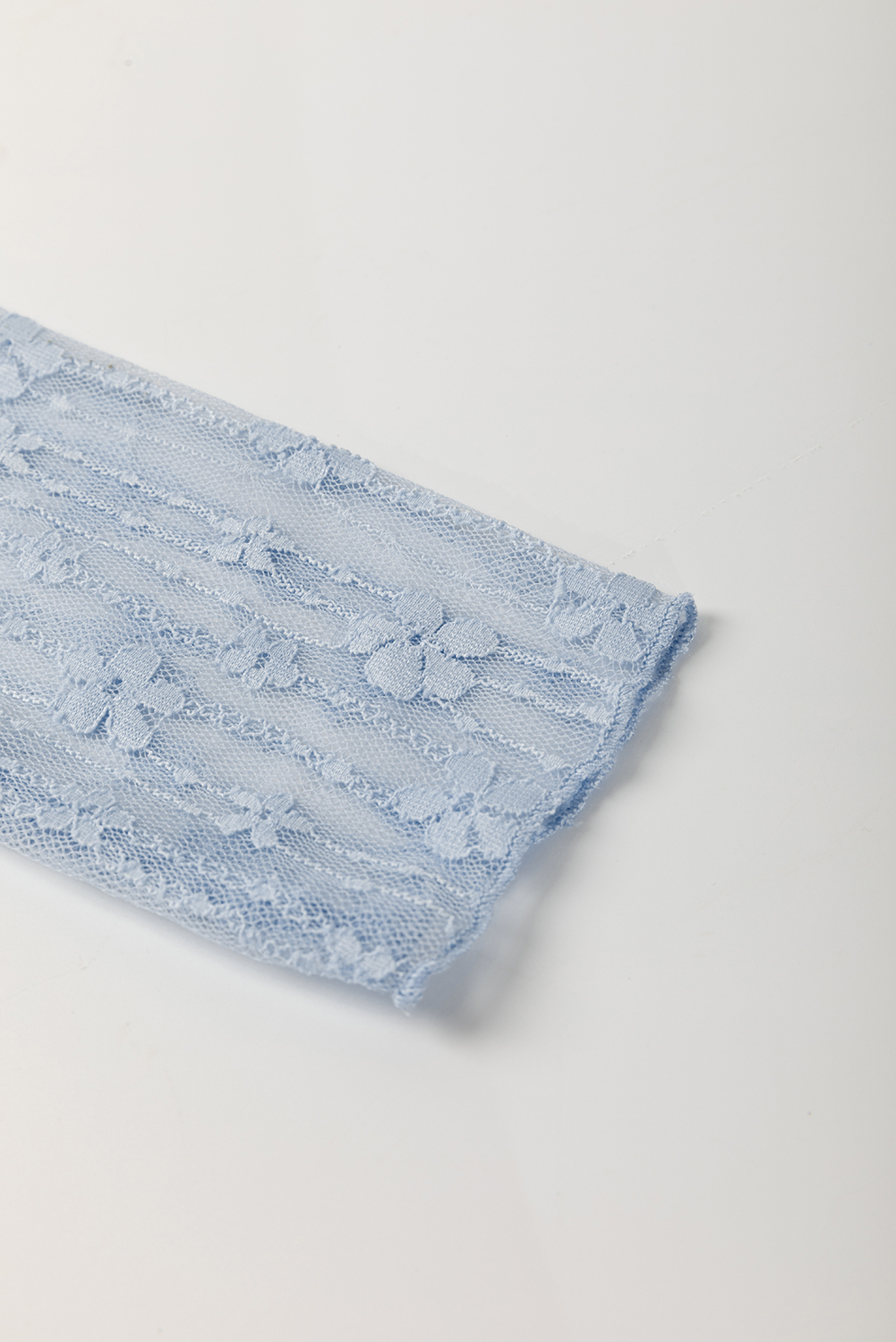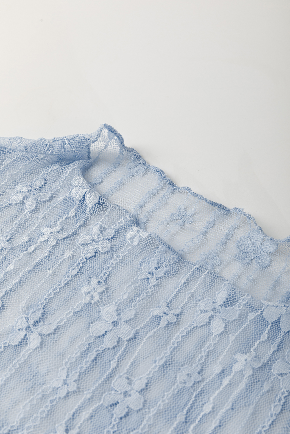 Ashleigh Blue Sheer Floral Lace Long Sleeve Slim Fit Top