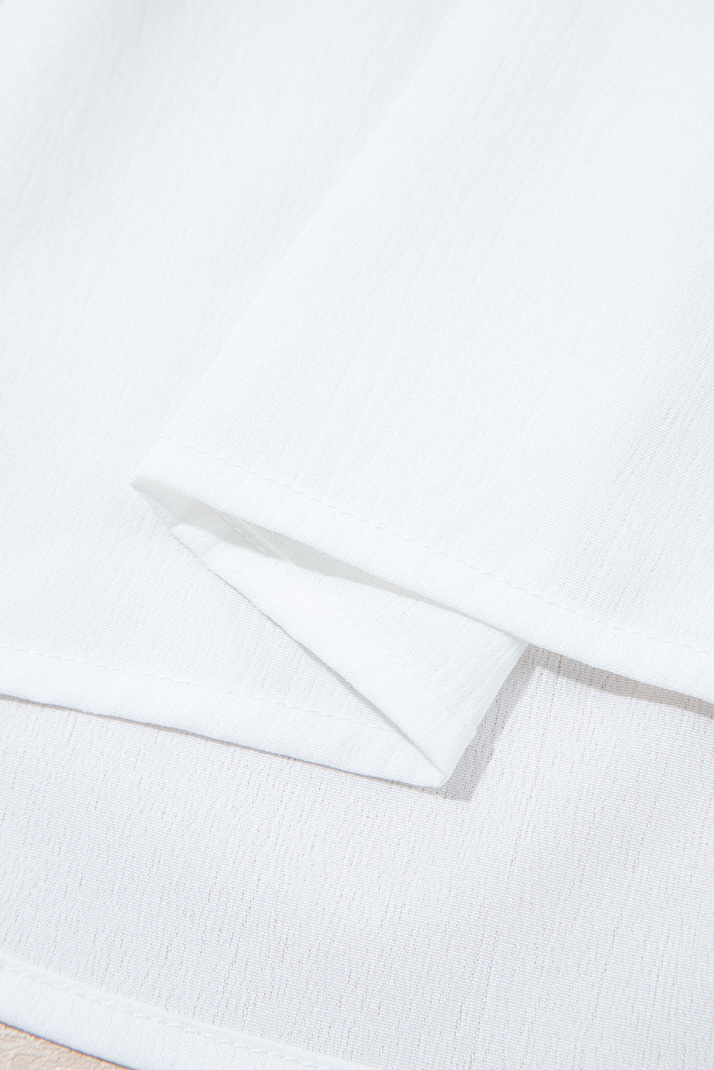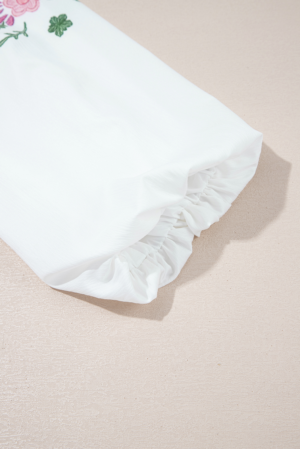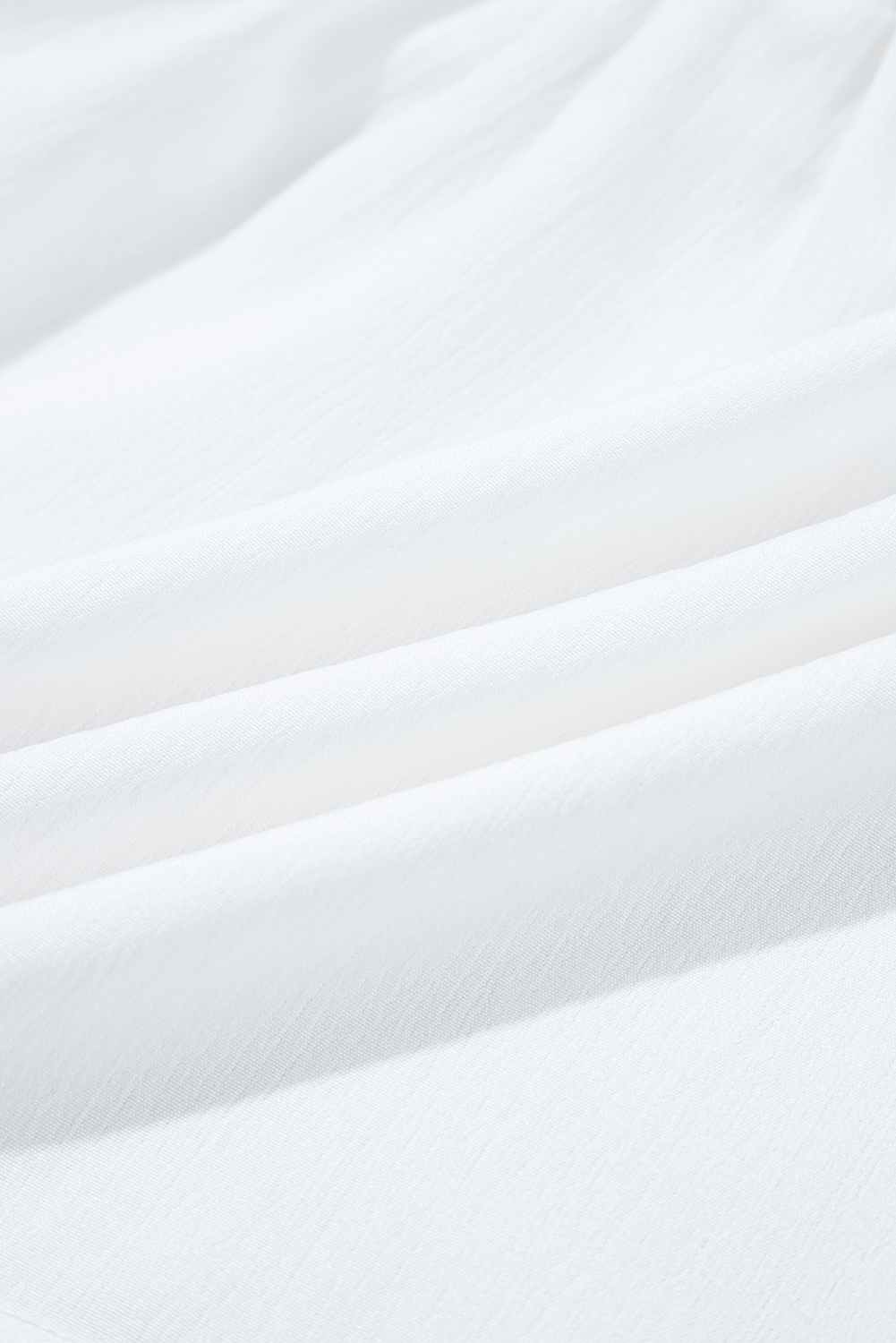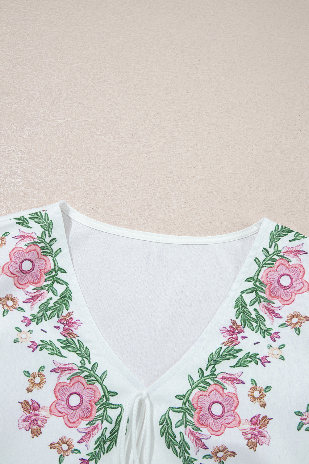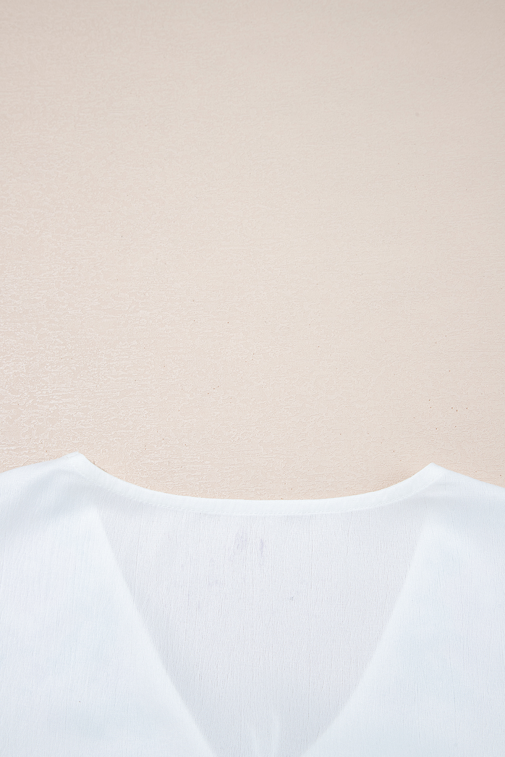 White Flower Print Lace-up V Neck Babydoll Blouse