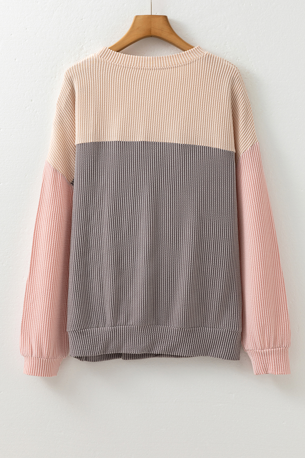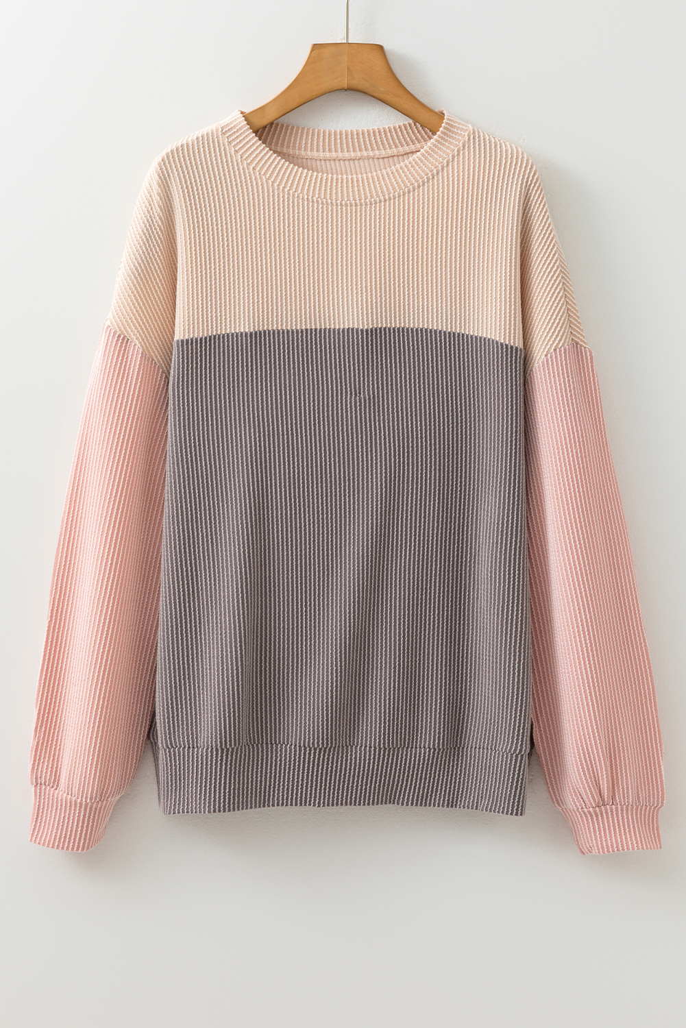 Multicolor Color Block Long Sleeve Ribbed Loose Top