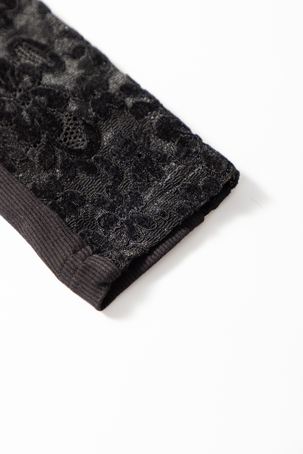 Black Floral Lace Patchwork Long Sleeve High Neck Slim Top