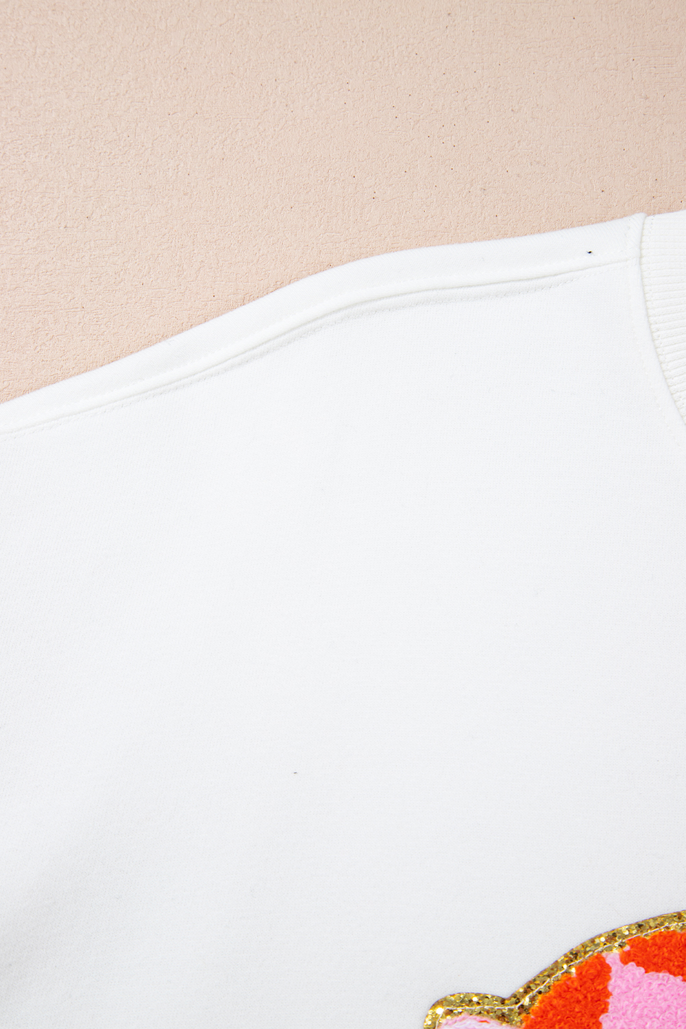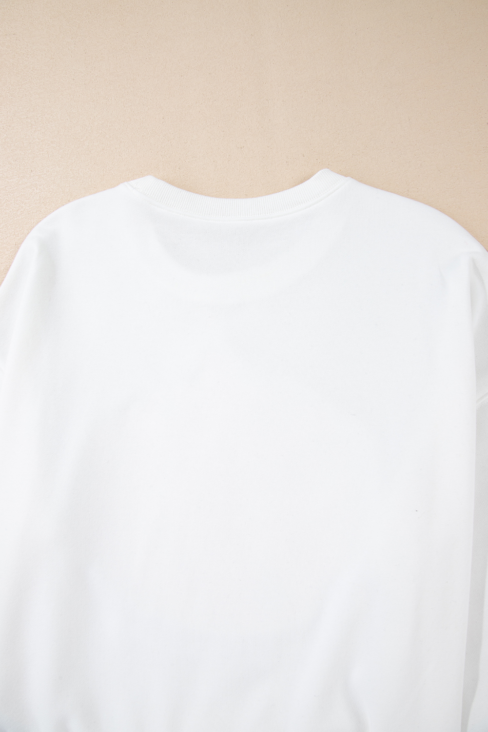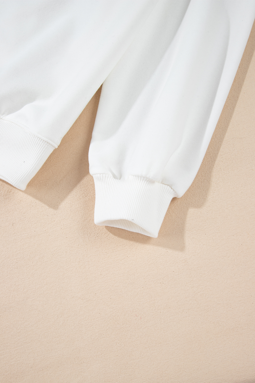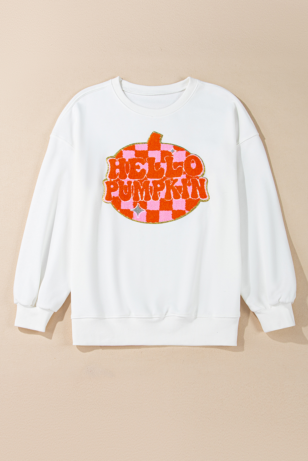 White Terry Halloween Pumpkin Patched Pattern Pullover Sweatshirt
